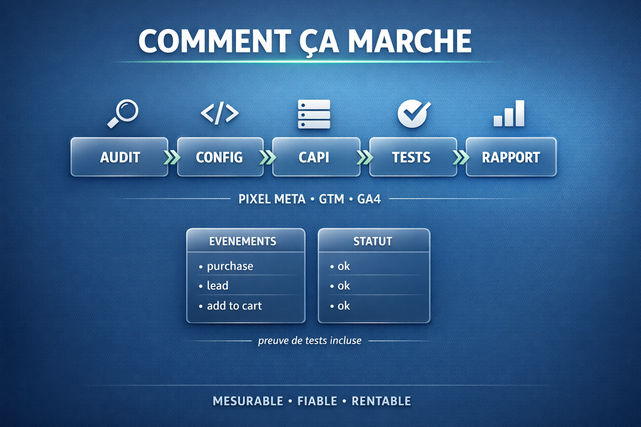 je suis consultant tracking et acquisition. je corrige et fiabilise votre mesure meta afin que vos conversions remontent correctement et que vos campagnes puissent optimiser sur des donnees fiables