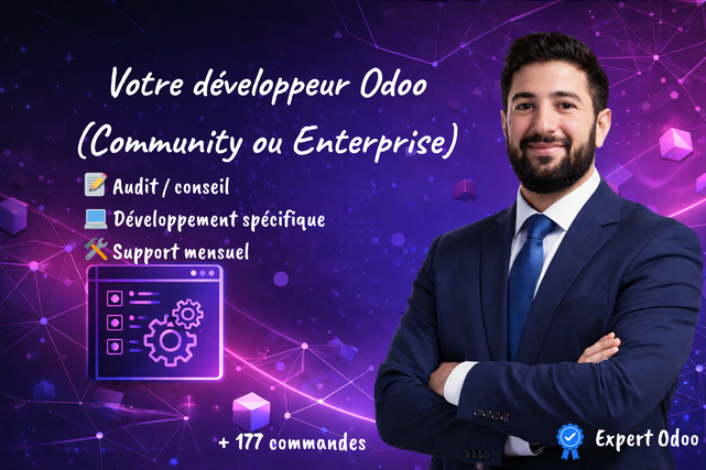 Proposé par El_aid •Expert Odoo | React | Node | Full Stack | Développement Web & Mobile | DevOps | VPS | Cloud Vente au total 0
