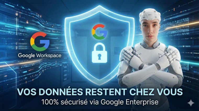 Sécurité 100% Google : Rien ne sort de votre compte. Tout est installé via des modules officiels sécurisés de Google. Vos données restent chez vous, protégées et privées.