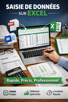 Je vous propose un service professionnel de saisie et organisation de données sur Excel, adapté à vos besoins :