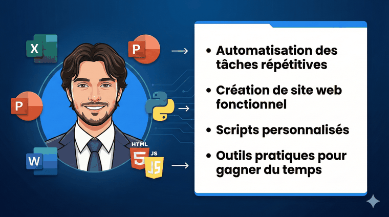 Je suis étudiant en école d’ingénieur et développeur polyvalent, capable de créer des scripts et outils sur mesure pour vous faire gagner du temps et simplifier vos projets.