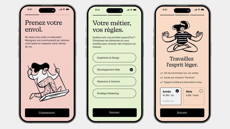 Je conçois des onboardings pour applications mobiles pensés comme de véritables leviers de performance produit.