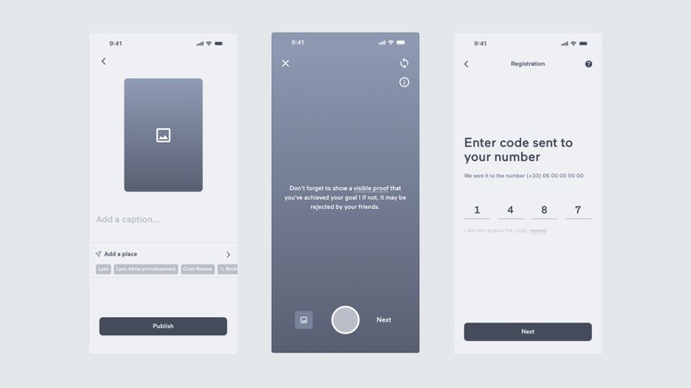 Création de 3 maquettes filaires (wireframes) pour visualiser la structure et le parcours utilisateur avant le design final. Permet de tester et valider le flow de l’application rapidement.
