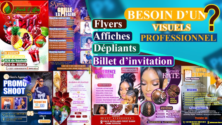 Aujourd’hui, je vous propose un service dédié à la création de flyer, affiche, dépliant et billet d’invitation, pensé pour répondre aux besoins des particuliers comme des professionnels. Que ce soit pour un événement, une promotion, une communication d’entreprise ou une occasion spéciale, mon objectif est de vous fournir un support visuel qui transmet efficacement votre message tout en valorisant votre image.