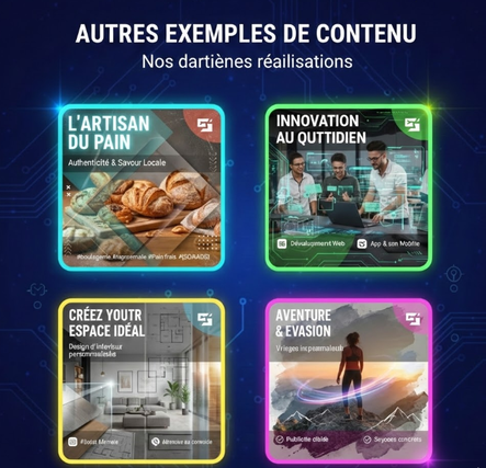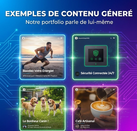 Imaginez pouvoir publier du contenu professionnel et engageant sans y passer vos journées. Des posts qui respectent votre identité visuelle, parlent à votre audience et génèrent de l'engagement.