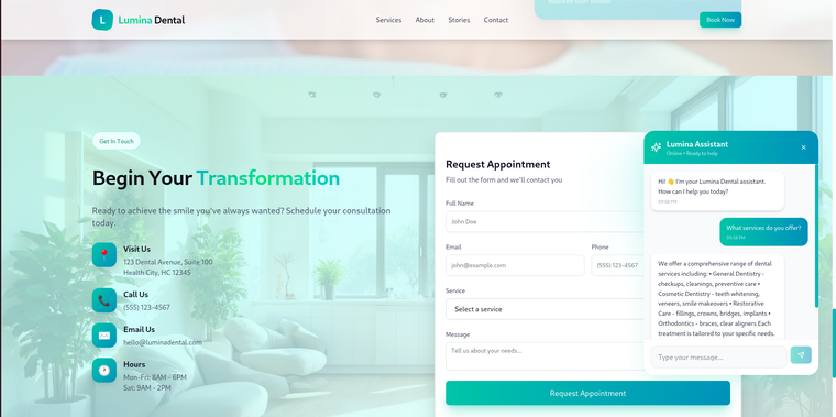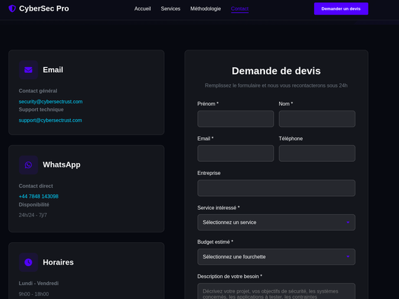 ↳ Outils de conversion : Formulaires de contact, prise de rendez-vous et redirection WhatsApp.