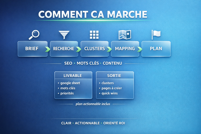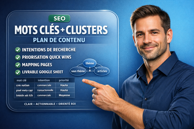 je suis consultant seo et acquisition. je transforme une liste de mots cles en plan actionnable pour creer les bonnes pages et prioriser ce qui rapporte.