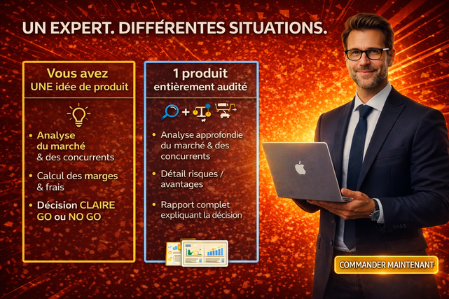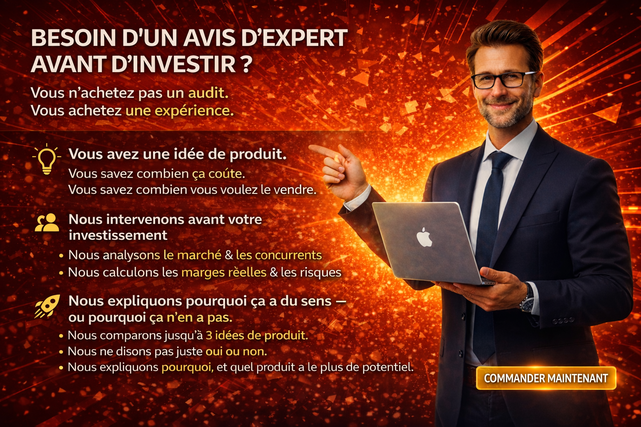 J’analyse votre idée de produit Amazon afin d’évaluer son potentiel réel, les risques et la viabilité du projet.