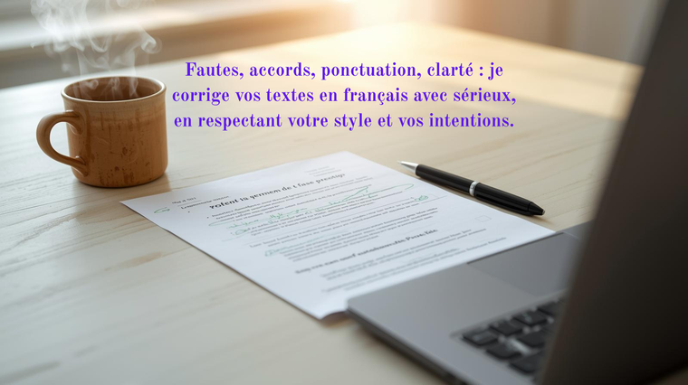 Fautes, accords, ponctuation, clarté : je corrige vos textes en français avec sérieux, en respectant votre style et vos intentions.