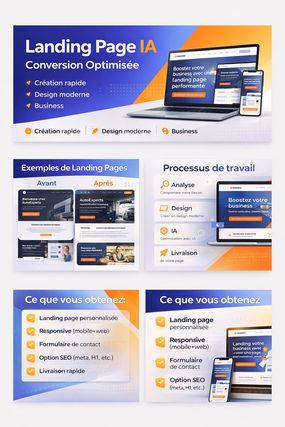 Spécialisé dans la création de sites web modernes, de landing pages optimisées avec intelligence artificielle et de boutiques e commerce prêtes à vendre, j’accompagne les entrepreneurs et entreprises françaises dans leur développement digital. J’aide également les particuliers à booster leur carrière grâce à des CV optimisés ATS et des profils LinkedIn attractifs pour les recruteurs. ✔ Landing pages à fort taux de conversion ✔ Boutiques en ligne Shopify et WooCommerce ✔ Audit et optimisation de sites web ✔ CV professionnels et profils LinkedIn Mon approche combine intelligence artificielle et expertise humaine pour livrer des résultats concrets, rapides et adaptés à vos objectifs. Disponible et réactif, je mets la satisfaction client au centre de chaque projet.