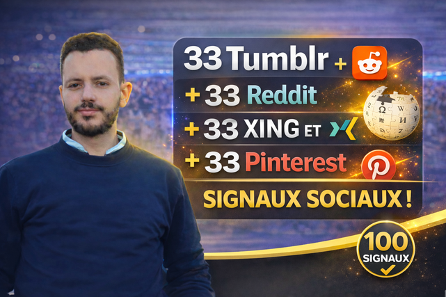 100 signaux sociaux vers votre URL (Tumblr + Reddit + Xing + Pinterest)