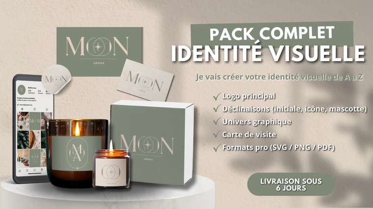 La prestation débute par un échange afin de bien comprendre votre projet, votre univers et vos attentes. À partir de ces éléments, j’élabore un univers graphique complet, pensé spécifiquement pour votre entreprise. Une fois cette base validée ensemble, je réalise le logo principal, puis ses déclinaisons afin qu’il soit parfaitement adaptable à tous vos supports : réseaux sociaux, carte de visite, tampon, supports imprimés et digitaux.