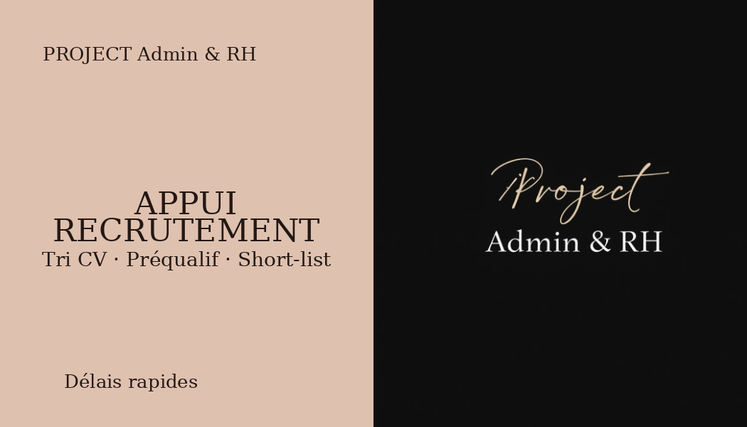 Vous n’avez pas de service RH en interne ou vous avez besoin de renfort ? Je prends en charge votre administration du personnel, en toute fiabilité. Assistante de direction / Administrative & RH, j’accompagne les TPE/PME dans la gestion quotidienne. Je travaille avec rigueur, discrétion et efficacité, en m’adaptant aux besoins du dirigeant et aux urgences du terrain. Disponible à distance et/ou sur site selon la mission. 🔹 Ce que je peux gérer : Création et suivi des dossiers salariés Rédaction et suivi des documents RH Suivi des congés, absences, arrêts Préparation des éléments variables de paie Organisation et structuration des process RH 🎯 Solution idéale pour : TPE / PME Startups Entreprises sans RH dédié 💡 Approche pragmatique, claire et conforme aux obligations administratives. 💰 Offre Forfait mensuel (à adapter)