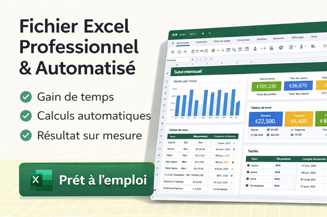 Vous recevez un fichier Excel professionnel, clair et prêt à l’emploi, adapté exactement à vos besoins.