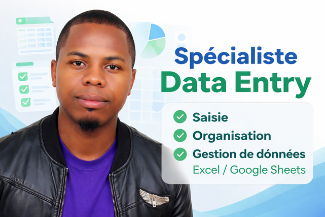 Besoin de données fiables, claires et bien organisées ? Vous êtes au bon endroit ! Je suis un spécialiste en saisie et gestion de données, avec une approche rapide, précise et professionnelle. Mon objectif : vous faire gagner du temps et réduire les erreurs.