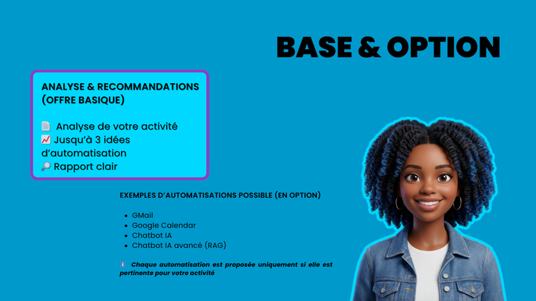 ◆ Les automatisations concrètes (workflows, chatbots, etc.) sont proposées séparément en options