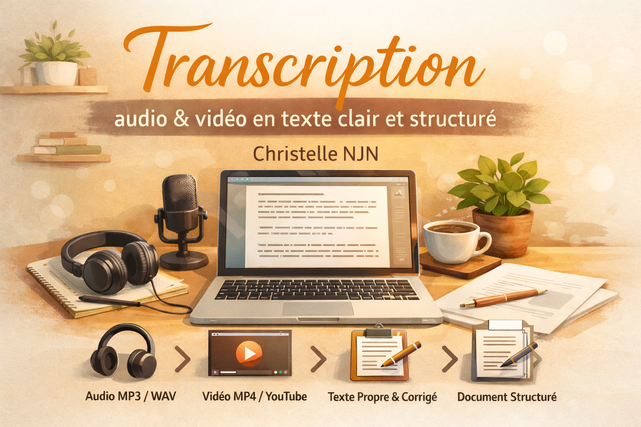 Derrière chaque audio ou vidéo, il y a une voix, une histoire, un message. Mon rôle est de le transformer en un texte clair, lisible et agréable à lire, tout en restant fidèle à vos paroles.