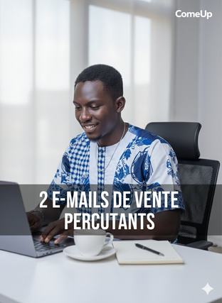 Je vais concevoir pour vous 2 e-mails de vente percutants spécialement étudiés pour capter l'attention de vos prospects dès la première seconde. Mon objectif est simple : transformer vos lecteurs en clients et booster votre chiffre d'affaires.