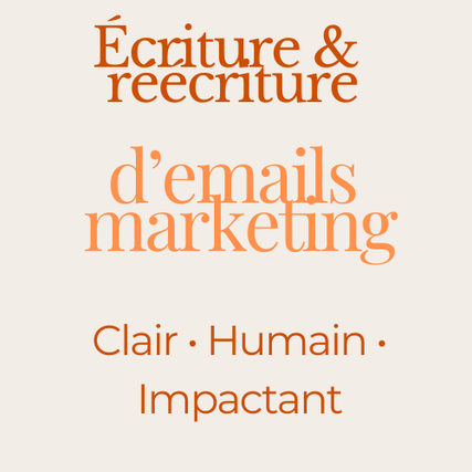 Je réécris vos emails marketing pour les rendre plus fluides, plus humains et plus impactants, tout en respectant le ton de votre marque.
