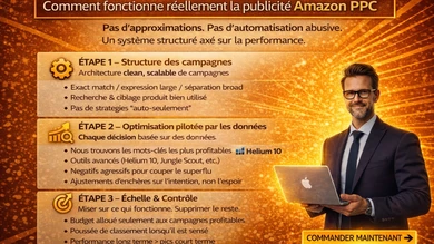 Je suis David Miller et je travaille avec une équipe expérimentée et spécialisée dans les audits de produits Amazon, la création et l'optimisation de fiches produits, ainsi que les stratégies PPC. Depuis des années, nous développons, gérons et faisons croître des activités Amazon pour nos clients et à travers nos propres opérations de prestataire . Cette expérience pratique guide chacune de nos décisions. Notre approche repose sur une analyse approfondie du marché, une expertise pointue en mots-clés, une priorité donnée à la rentabilité et une mise en œuvre structurée, conçue pour une performance durable. Nous parlons couramment anglais, français, espagnol et allemand.