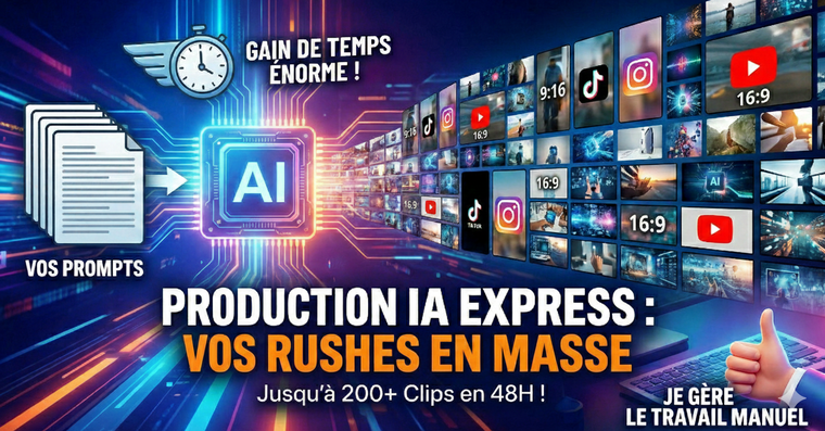 Je ne vends pas un script automatique. Je vends mon temps et mon expertise. Je prends votre liste d'idées et je m'occupe personnellement de tout le travail manuel de génération sur les meilleurs outils du marché (Google Veo, Imagen).