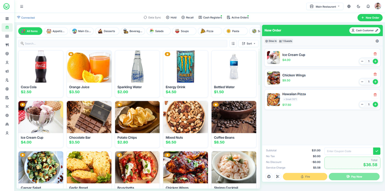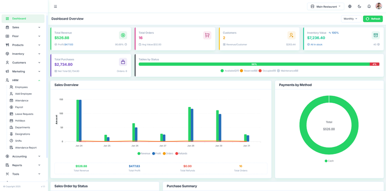 Restaurant POS est un système de gestion de caisse intelligent, performant et fiable, conçu pour simplifier les opérations quotidiennes de votre restaurant. Il vous permet de gérer la facturation, les commandes cuisine, les stocks, le personnel, les clients et la comptabilité depuis une plateforme unique et centralisée.