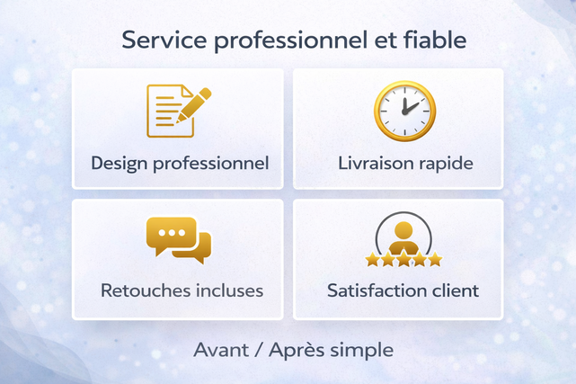 Mon engagement : vous livrer un visuel professionnel, élégant et efficace, dans le respect des délais.