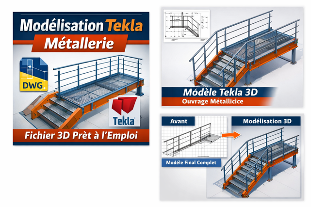 Proposé par Gael44 •Dessinateur Tekla – Serrurerie métallerie (plans fabrication & modélisation 3D) Vente au total 0
