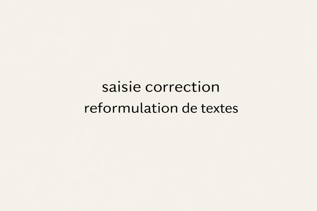 Si vous avez besoin d’un travail sérieux, rapide et soigné pour la saisie, la correction ou la reformulation de vos textes, je suis disponible pour vous accompagner. N’hésitez pas à me contacter avant commande afin de m’expliquer vos besoins et d’obtenir un service adapté.