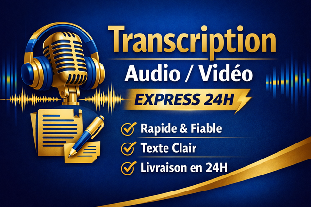 Je propose un service de transcription audio et vidéo professionnelle pour tous types de contenus, idéal pour transformer vos fichiers en texte clair, fidèle et exploitable. Ceci avec une attention particulière à la qualité, au respect des délais et à la satisfaction client.