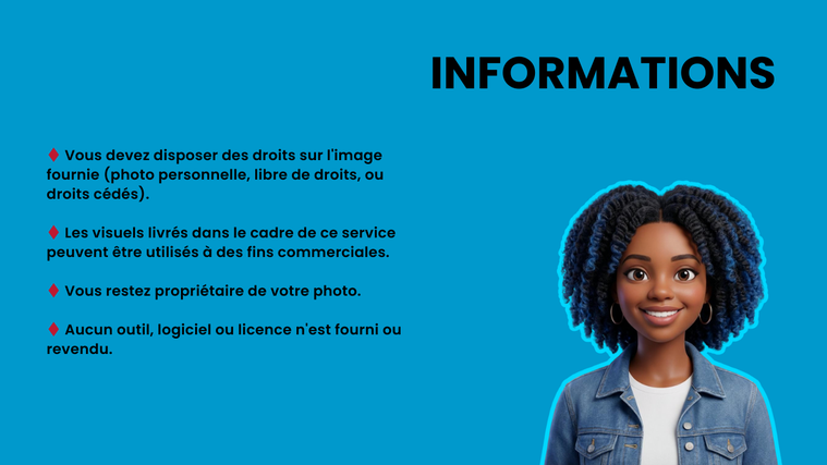 ◆ Vous devez disposer des droits sur l'image fournie (photo personnelle, libre de droits, ou droits cédés).