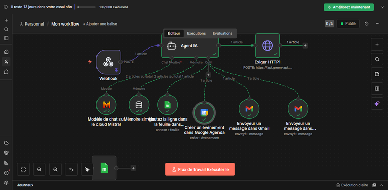 n8n est une solution d’automatisation robuste permettant de créer des workflows avancés, auto-hébergés ou cloud, parfaitement adaptés aux automatisations techniques et métiers.