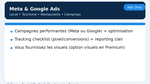 Growth (par semaine) : 3 contenus/semaine IG+FB + 1 campagne Ads (Meta OU Google, sans visuels)
