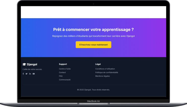 J’accompagne les entrepreneurs, étudiants et porteurs de projets dans la réalisation de leurs sites web, applications mobiles et fonctionnalités techniques.