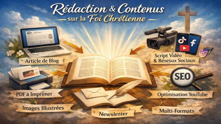 Bonjour et bienvenue sur mon profil 😊 Je suis rédactrice de contenus, spécialisée dans la création de textes clairs, structurés et adaptés à différents supports : web, PDF, newsletter et formats vidéo. J’ai suivi une formation en webmarketing, en secrétariat, ainsi qu’un cursus littéraire, ce qui me permet de proposer des contenus à la fois : soignés sur le plan rédactionnel, structurés de manière professionnelle, adaptés aux objectifs et au public visé. Je me suis naturellement orientée vers le domaine de la foi chrétienne, car j’ai moi-même vécu un cheminement spirituel personnel. Aujourd’hui, je souhaite mettre mes compétences au service de projets et de valeurs en accord avec ma foi, dans une démarche respectueuse, sincère et professionnelle. Je rédige des contenus adaptés à différents usages : articles de blog ou de site internet, documents PDF prêts à imprimer ou à partager, newsletters, scripts pour vidéos YouTube, scripts courts pour les réseaux sociaux. Mon approche est simple : 👉 prendre le temps de comprendre votre demande, 👉 rédiger un contenu fidèle à vos valeurs et à votre message, 👉 livrer un travail soigné dans les délais annoncés. Je reste bien entendu disponible pour les ajustements nécessaires afin que le résultat corresponde pleinement à vos attentes. N’hésitez pas à me contacter avant de commander, je serai ravie d’échanger avec vous et de vous conseiller sur le format le plus adapté à votre projet 🌿