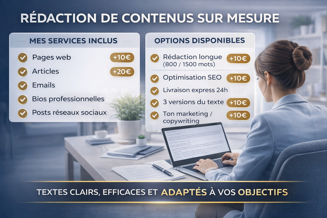 Rédacteur spécialisé en fiches produits e-commerce. J’aide les vendeurs à améliorer leurs descriptions pour vendre plus grâce à des textes clairs, vendeurs et optimisés SEO. Livraison rapide et travail professionnel.