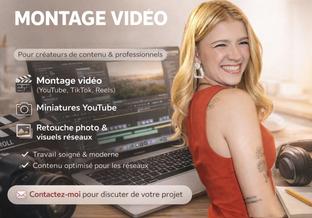Que ce soit pour YouTube, TikTok ou un projet perso, je t’aide à donner une meilleure vibe à tes vidéos, sans stress ni prise de tête