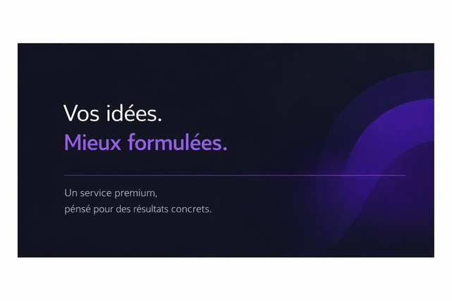 Chaque texte est relu manuellement afin d’obtenir un rendu naturel et professionnel, adapté à votre objectif (texte pro, présentation, post LinkedIn, contenu généré par IA, etc.).