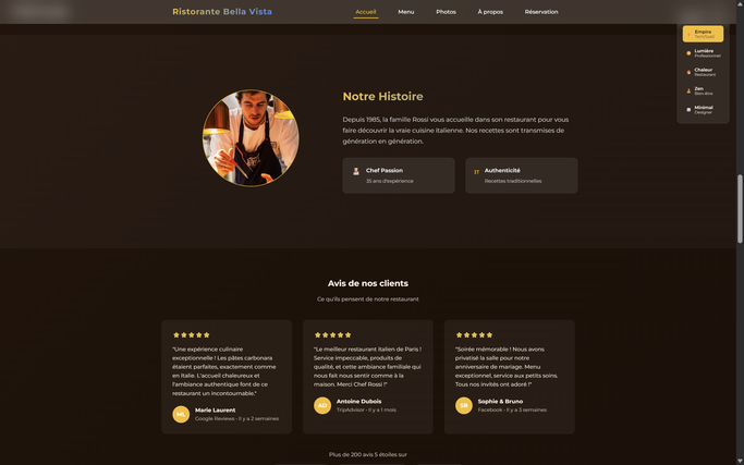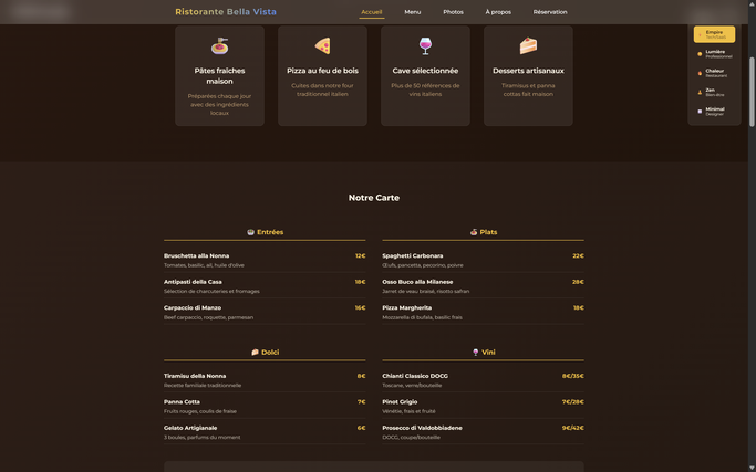 Je suis spécialisée dans la création de sites vitrines professionnels pour restaurants et cafés.