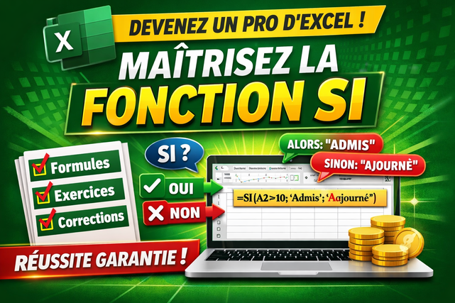 Vous êtes débutant et Excel vous fait peur ? Les formules vous semblent incompréhensibles ? Cette formation vous guide pas à pas pour maîtriser la fonction SI, créer vos premières formules et automatiser vos calculs en toute simplicité.