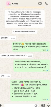 Je vais configurer un chatbot automatique pour ton business et répondre à tes clients 24/7