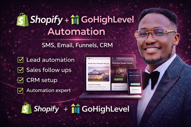 I will set up Shopify GoHighLevel CRM automation funnels SMS and email