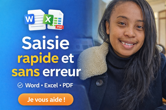 Je vous propose un service professionnel de saisie de données avec un rendu propre et bien structuré.Je réalise la saisie de vos documents PDF ou images vers Word, la saisie de données Excel, la mise en forme professionnelle ainsi que la correction des petites erreurs si nécessaire.