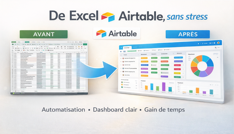 Je transforme vos fichiers Excel en une base Airtable structurée, claire et exploitable au quotidien.