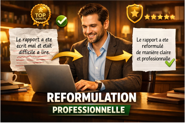 Le service comprend la reformulation d’un texte jusqu’à 500 mots, avec correction du style et de l’orthographe si nécessaire.