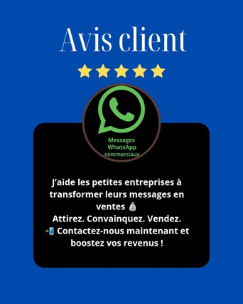 J’aide les entrepreneurs et vendeurs à mieux vendre sur WhatsApp grâce à des messages clairs, des statuts efficaces et des pages de vente simples. Travail sérieux, rapide et professionnel.
