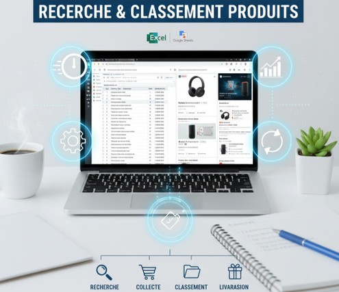 Je me charge de rechercher toutes les informations disponibles sur vos produits, qu’il s’agisse de textes descriptifs, caractéristiques techniques ou images, directement en ligne. Je classe ensuite ces données selon vos consignes exactes, que ce soit par catégorie, type, priorité ou autre critère que vous définissez dans votre documentation.