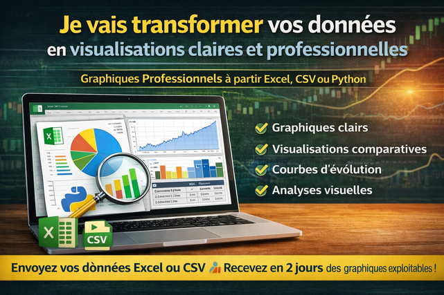Je transforme vos fichiers en graphiques clairs, professionnels et faciles à interpréter pour vos présentations, rapports ou analyses.