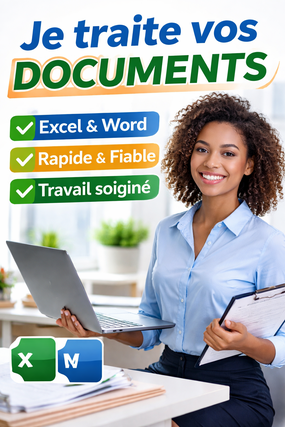 Je travaille principalement avec Microsoft Excel et Microsoft Word pour organiser, mettre en forme et améliorer vos fichiers de manière claire et professionnelle.