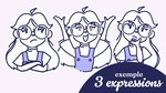 - Votre mascotte / avatar avec 2 à 4 expressions du visage supplémentaires